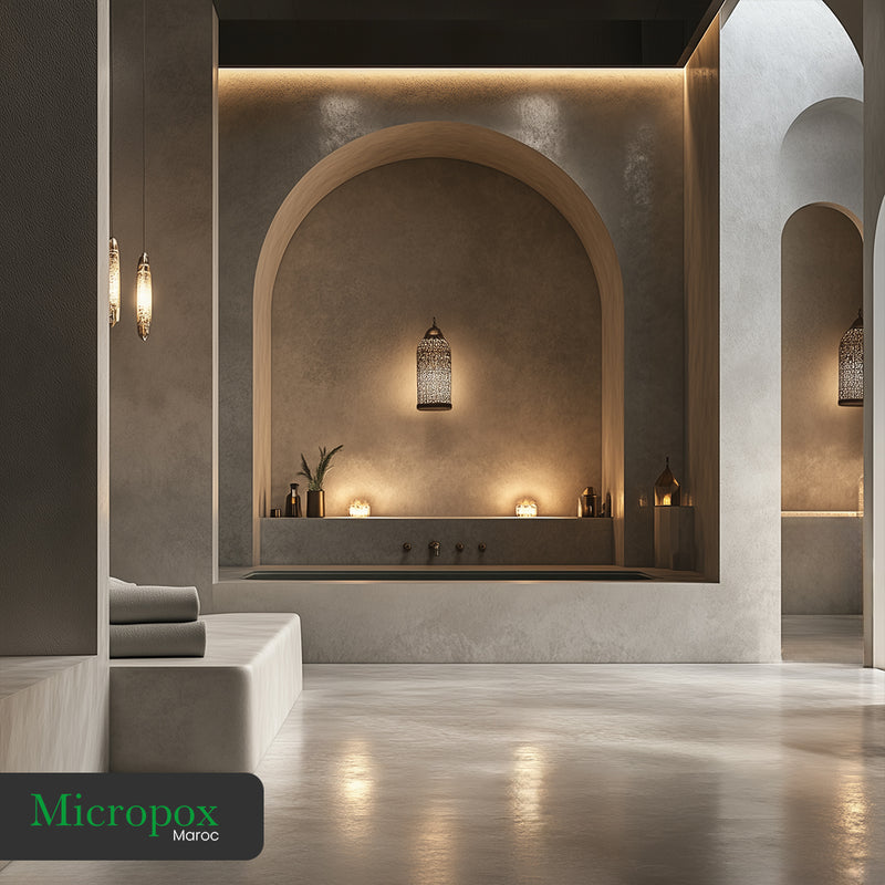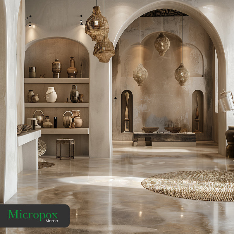 Les réalisations présentées mettent en avant l’utilisation du béton époxy et des revêtements décoratifs modernes proposés par Micropox Maroc. Que ce soit en résidentiel, commercial, industriel ou extérieur, ces projets illustrent la polyvalence et la qualité des solutions Micropox : sols étanches, murs décoratifs, piscines en Chukum, hammams ou encore parkings industriels. Alternative haut de gamme au béton ciré, le béton époxy assure élégance, durabilité et personnalisation. Cette galerie regroupe différents chantiers réalisés avec les produits Micropox, démontrant leur adaptation aux besoins des particuliers comme des professionnels.